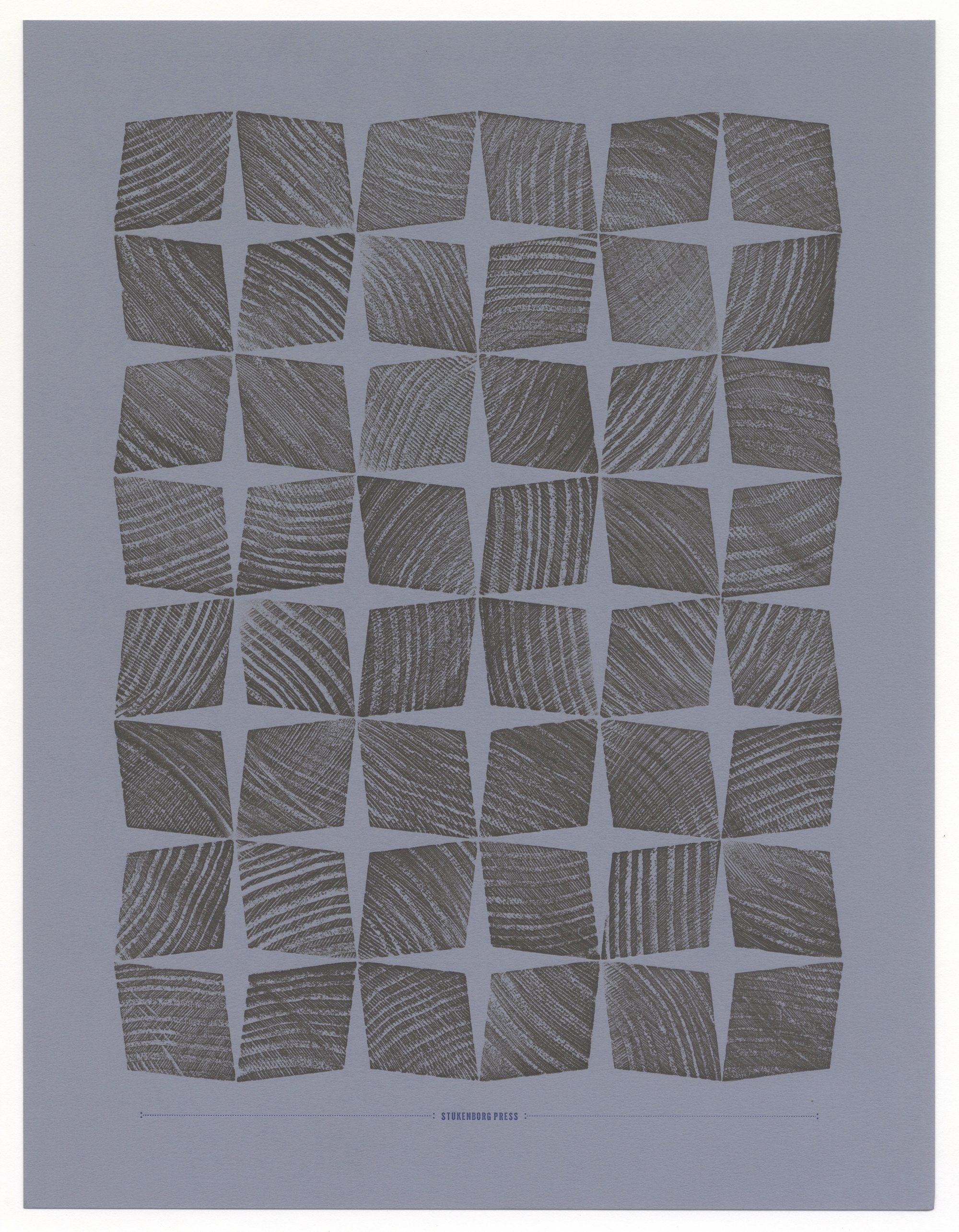 Most often I use maple when making my letterpress blocks, these however use pine - purposefully chosen to have the grain of the wood pronounced. For my fellow letterpress nerds out there, the pieces of wood type used in the prints Batch 011 through Batch 018 are all eight-line or 8 pica x 8 pica. These blocks are from a whole case worth of a border system that I am testing out. There are centered squares, squares cocked clockwise, squares cocked counterclockwise, and a rhombus that fits with the angles of either rotation of square pieces.