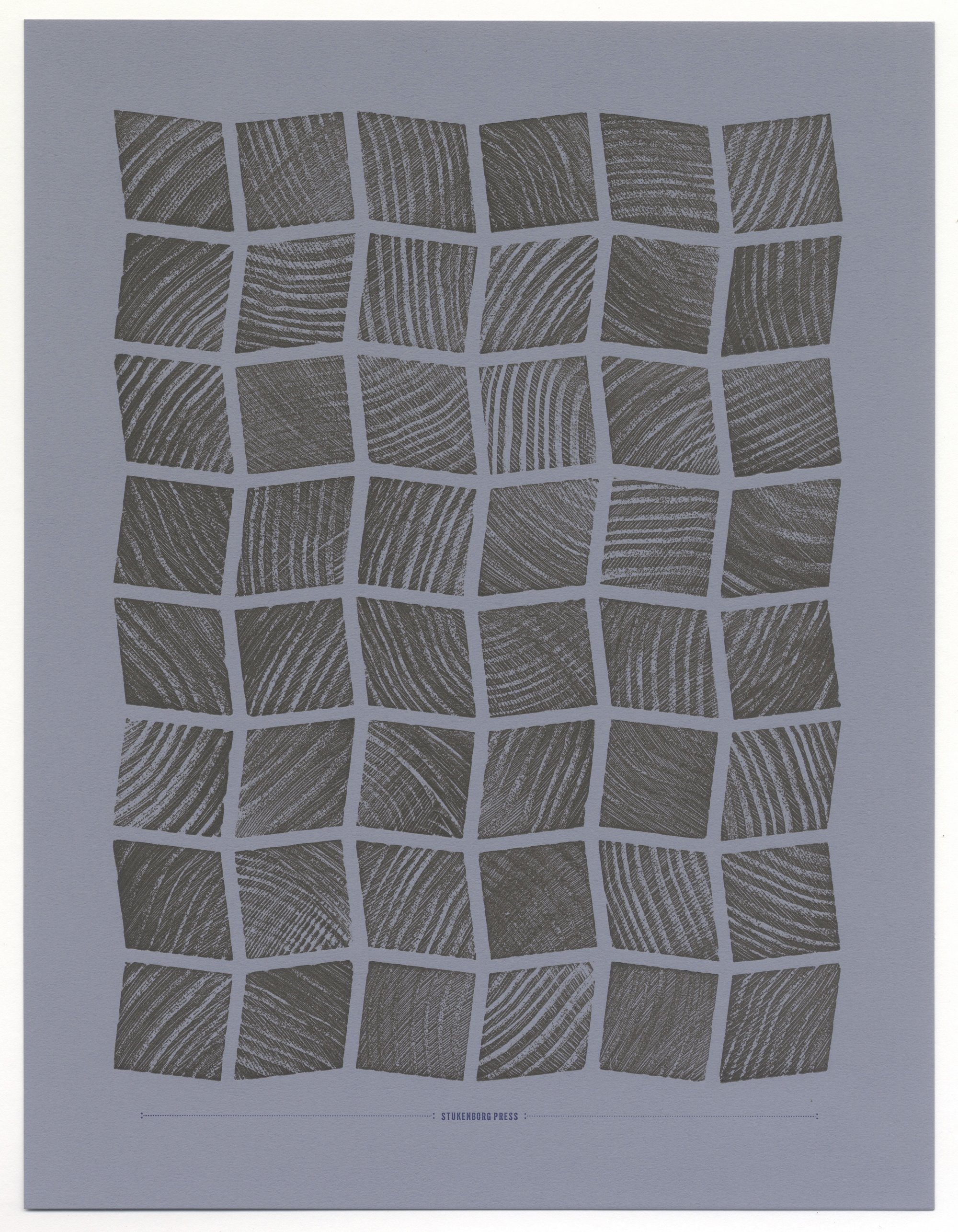 Most often I use maple when making my letterpress blocks, these however use pine - purposefully chosen to have the grain of the wood pronounced. For my fellow letterpress nerds out there, the pieces of wood type used in the prints Batch 011 through Batch 018 are all eight-line or 8 pica x 8 pica. These blocks are from a whole case worth of a border system that I am testing out. There are centered squares, squares cocked clockwise, squares cocked counterclockwise, and a rhombus that fits with the angles of either rotation of square pieces.